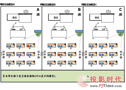 1)多名學(xué)生按下發(fā)言請(qǐng)求按鈕(可以是不同教室)