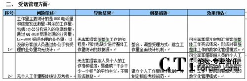 “效率”層面對于草創(chuàng)型呼叫中心來講,最重要的則是呼叫中心系統(tǒng)的選型了,其中實質(zhì)上包括了:硬件(選擇哪種交換機)、軟件(選擇哪種CTI、CRM)、號碼(選擇哪種呼叫中心號碼)、線路(選擇哪種電話線路)的選型。選型時需要根據(jù):呼叫中心建設(shè)的規(guī)模、未來擴容的計劃、投入的預算進行綜合考慮,一般采用招標模式進行。    對于已經(jīng)存在、處于運營過程中,需要提升運營品質(zhì)的呼叫中心,在制定運營規(guī)劃時則必須按照:先調(diào)研,后制定方案,最終落實執(zhí)行的思路展開工作。