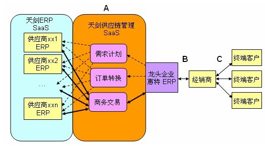 (1)改變傳統(tǒng)分散的供應(yīng)商的購銷環(huán)節(jié),將企業(yè)之間的購銷關(guān)系鎖定在特定的公共的供應(yīng)鏈平臺(tái)上。即通過SaaS供應(yīng)鏈管理平臺(tái),有機(jī)地、相互依賴地鏈接在一起,協(xié)同共贏實(shí)現(xiàn)真正意義上的電子商務(wù)交易。