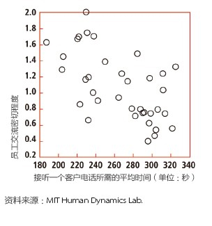 去年,彭特蘭的實(shí)驗(yàn)室與美國(guó)銀行(Bank of America)設(shè)在羅得島(Rhode Island)的呼叫中心合作,在80 名中心員工身上安裝了社會(huì)傳感器。這種傳感器看起來(lái)像一枚不顯眼的徽章,使用藍(lán)牙和紅外信號(hào)監(jiān)測(cè)實(shí)驗(yàn)對(duì)象每分鐘與哪些同事交談。測(cè)試活動(dòng)先開(kāi)展了一個(gè)月,后來(lái)又進(jìn)行了6周。第一個(gè)月后,實(shí)驗(yàn)室的研究人員發(fā)現(xiàn),與更多同事進(jìn)行過(guò)交談的員工能夠更快地接通電話,他們自我感覺(jué)的壓力也相對(duì)較小,而客戶滿意度卻與其他人一樣高。與刻板地遵循員工手冊(cè)或服從經(jīng)理的電子郵件指示相比,通過(guò)非正式的閑聊來(lái)交流問(wèn)題和解決方案似乎能取得更好的結(jié)果。有了這種結(jié)論之后,該呼叫中心嘗試盡量將員工的休息時(shí)間安排在一起,而非像過(guò)去那樣錯(cuò)開(kāi)。這樣員工就有了更多的時(shí)間參與閑聊。幾個(gè)月后,美國(guó)銀行向?qū)嶒?yàn)室報(bào)告了結(jié)果:該呼叫中心獲得了相當(dāng)于每年1,500 萬(wàn)美元的生產(chǎn)力提升。