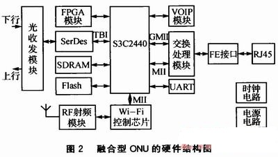 融合型ONU的硬件結(jié)構(gòu)圖如圖2所示。