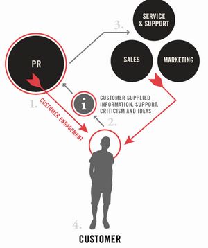 社會(huì)化CRM賦予了企業(yè)公關(guān)部門更重要的角色,通過公關(guān)部分與消費(fèi)者更多的互動(dòng),從中獲取消費(fèi)者的反饋信息、褒貶意見、新想法新創(chuàng)意。之后再通過銷售、市場推廣以及產(chǎn)品服務(wù)等措施來吸引更多目標(biāo)消費(fèi)群,并用公關(guān)活動(dòng)來進(jìn)一步推廣。