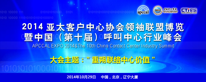 業(yè)界矚目的2014(第七屆)亞太客戶中心協(xié)會領(lǐng)袖聯(lián)盟博覽APCCAL EXPO暨中國(第十屆)呼叫中心行業(yè)峰會將于10月29日在中國北京舉行,其中29日為大會和展覽日,向所有關(guān)注行業(yè)發(fā)展的人士免費(fèi)開放。本次活動預(yù)計有超過八百名中國行業(yè)人士和二百名來自亞太地區(qū)的行業(yè)精英相聚一起,分享交流。本次活動的內(nèi)容包括關(guān)于呼叫中心運(yùn)營管理與技術(shù)的研討會,技術(shù)展覽,聯(lián)誼晚宴,呼叫中心實(shí)地參觀等。