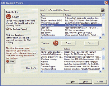由開放領域軟件(Open Field Software)新開發(fā)的Ella 能分揀電子郵件,并將垃圾郵件撇在一邊。如果你渴望清理你的郵箱又舍不得放棄Outlook 的話,Ella就是你理想的選擇。大多數(shù)電郵軟件的分類都是以信件的特定部位來進行分類的,如發(fā)件人的姓名或郵件主題。而Ella的分類更加詳盡周到,分類元素有100多種,從發(fā)信人到信件內容再到信件來源,可一一進行分類。如圖: