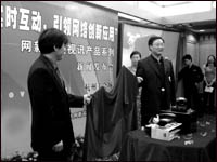 11月18日,杭州、上海、南京三地60多位記者同時利用網(wǎng)新易盛視訊產(chǎn)品,耳聞目睹了浙大網(wǎng)新科技股份有限公司總裁史烈主持的視訊產(chǎn)品發(fā)布會,體驗易盛視訊產(chǎn)品功用。