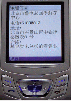 用戶只要在手機(jī)的"空中搜"中輸入相關(guān)企業(yè)名稱的一部分信息,例如:新鄉(xiāng) 第二百貨公司,或者輸入產(chǎn)品服務(wù)的名稱,例如:快遞,餐飲,就會(huì)搜索到符合其要求的一組企業(yè)信息,少則數(shù)條,多達(dá)數(shù)十條,點(diǎn)擊任意一個(gè),都會(huì)出現(xiàn)詳細(xì)的相關(guān)信息,信息中包括企業(yè)的電話、地址、企業(yè)介紹等。這樣的一次搜索需要的費(fèi)用是由搜索產(chǎn)生的數(shù)據(jù)流量費(fèi),費(fèi)用是一分錢,時(shí)間是幾秒,信息服務(wù)的提供完全免費(fèi)。