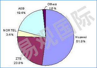 圖:中國NGN市場(chǎng)各設(shè)備廠商市場(chǎng)份額