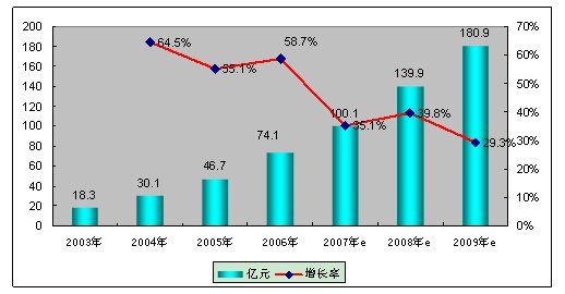 在《2006-2007年中國增值服務提供商發(fā)展趨勢及市場機會研究報告》中顯示,2006年,我國WAP業(yè)務發(fā)展勢頭迅猛,市場總量由2005年的46.7億元增長到74.1萬元,從用戶數情況來看,2006年年底,WAP業(yè)務用戶總數達到4798.4萬戶。2007年,WAP業(yè)務仍然會有長足的發(fā)展,絕對增長將有所提高,需要新的技術和業(yè)務內容,以創(chuàng)造新的增長,市場總量預計將超過100億元。