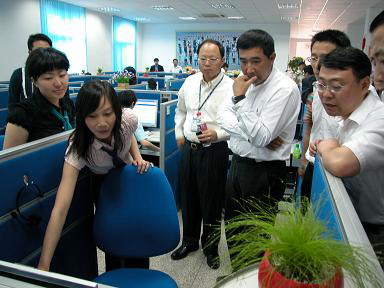 6月11日下午,省公司總經(jīng)理廖康、副總經(jīng)理鄭成渝一行前往呼叫中心視察,在認(rèn)真聽取了實業(yè)公司郭志豪總經(jīng)理和相關(guān)負(fù)責(zé)人對呼叫中心的運營模式、業(yè)務(wù)流程及管理結(jié)構(gòu)等情況的詳細(xì)介紹后,廖總對呼叫中心下一步的發(fā)展提出了三個方面的建議和要求。一是要準(zhǔn)確把握呼叫中心面向市場、面向社會,成為全省話務(wù)服務(wù)商的市場定位;二是要與主業(yè)公司多聯(lián)系、多溝通,建立與主業(yè)業(yè)務(wù)相銜接的業(yè)務(wù)流程,搭建支撐主業(yè)業(yè)務(wù)的平臺;三是要注重企業(yè)品牌的創(chuàng)建工作,下功夫?qū)艚兄行牡钠髽I(yè)品牌進(jìn)行塑造。