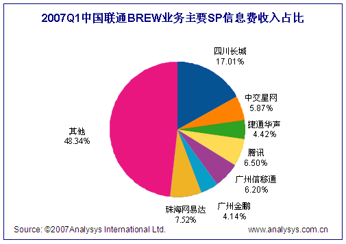 2007年第1季度中國聯(lián)通BREW市場整體規(guī)模達(dá)0.51億人民幣