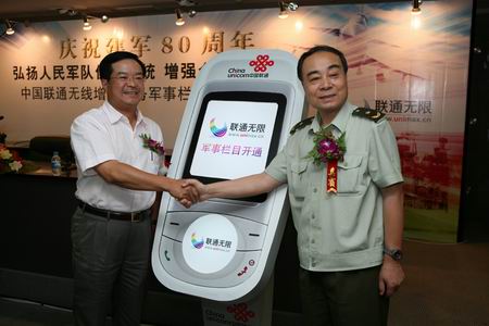 7月25日下午,中國(guó)聯(lián)通與解放軍總政治部宣傳部、解放軍報(bào)社等重要媒體共同宣布,將正式開(kāi)通無(wú)線增值業(yè)務(wù)軍事欄目,將為聯(lián)通1.5億用戶提供軍事資訊服務(wù)。