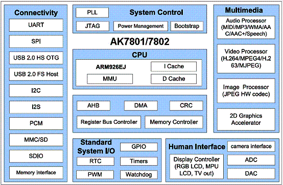 AK36系列PND方案的硬件架構(gòu)由AK36系列外接GPS模塊或芯片組組成,搭配MLC Nandflash海量存儲(chǔ)。軟件方面采用安凱自主研發(fā)的輕量級(jí)操作系統(tǒng)實(shí)現(xiàn)系統(tǒng)和多媒體等主要功能,內(nèi)置凱立德V3.0的導(dǎo)航版本。據(jù)安凱稱,該方案具有系統(tǒng)成本低、加工簡(jiǎn)單、低功耗、平臺(tái)穩(wěn)定且開(kāi)放性好、卓越的搜星性能等優(yōu)勢(shì)。