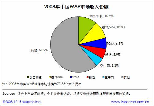 與此同時,傳統(tǒng)互聯(lián)網(wǎng)廠商在WAP市場占據(jù)份額逐步提升。2008年運營商通過奧運事件營銷較好的培養(yǎng)了用戶的移動互聯(lián)網(wǎng)使用習(xí)慣,而騰訊、新浪等廠商能夠較好的將其在傳統(tǒng)互聯(lián)網(wǎng)領(lǐng)域的產(chǎn)品、內(nèi)容、品牌資源整合到移動互聯(lián)網(wǎng),在為用戶提供更為便捷、無縫的網(wǎng)絡(luò)服務(wù)的同時延續(xù)其在互聯(lián)網(wǎng)領(lǐng)域的強(qiáng)勢地位。艾瑞咨詢預(yù)計,2009年互聯(lián)網(wǎng)廠商對WAP市場的分流還將持續(xù)加劇。