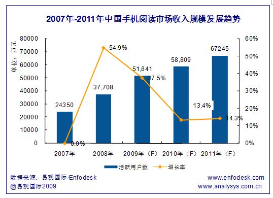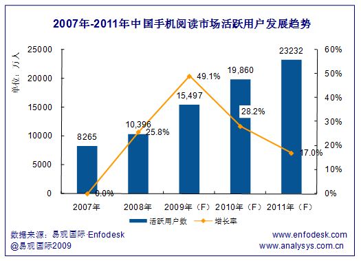 易觀(guān)預(yù)測(cè):2010年中國(guó)手機(jī)閱讀活躍用戶(hù)數(shù)將達(dá)2億