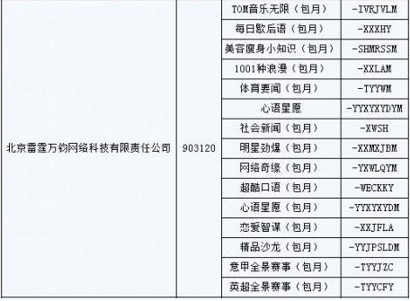 圖:北京雷霆萬(wàn)均網(wǎng)絡(luò)科技有限責(zé)任公司被強(qiáng)制下線業(yè)務(wù)列表