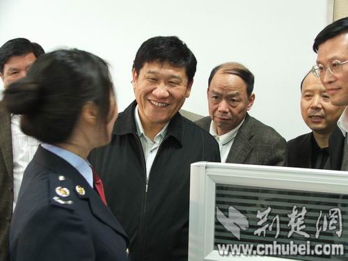 圖:共湖北省委常委、常務(wù)副省長李憲生與12366熱線工作人員親切交談