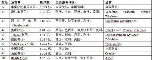 中移動(dòng)位居全球無線運(yùn)營商排行榜第一