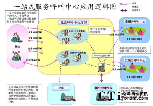 - 依托完善的呼叫中心技術(shù)平臺,好醫(yī)生在國內(nèi)唯一的國家級醫(yī)藥產(chǎn)業(yè)基地——泰州“中國醫(yī)藥城”構(gòu)建完成了國內(nèi)首家具有100座席以上處理能力的醫(yī)藥衛(wèi)生領(lǐng)域的專業(yè)化呼叫中心。該呼叫中心企業(yè)具有多址分布、全國組網(wǎng)功能。座席組物理上既可以在北京(好醫(yī)生的呼叫中心總部),也可以在北京以外的任何地區(qū)(好醫(yī)生的呼叫中心分部);通過IP技術(shù),呼叫中心的各路話務統(tǒng)一由北京接入或呼出。