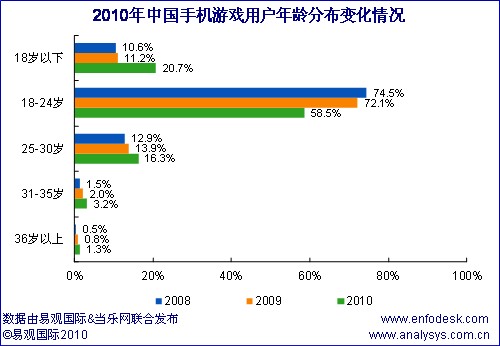 近期易觀國際、當(dāng)樂網(wǎng)聯(lián)合對手機游戲用戶進行調(diào)研,推出《中國手機游戲用戶研究報告2010》,從中國手機游戲用戶結(jié)構(gòu)特征和用戶行為方面分析手機游戲產(chǎn)業(yè)發(fā)展三大空間: