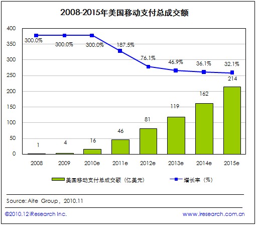 2015年美國(guó)移動(dòng)支付總成交額將達(dá)214億美元