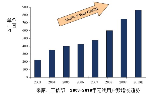 中國的移動(dòng)增值服務(wù)和移動(dòng)支付解決方案的發(fā)展與手機(jī)行業(yè)的增長密切相關(guān)。根據(jù)工信部的調(diào)查,截止2009年年底,有7.47億人擁有手機(jī),其中2.33億的用戶曾至少使用一次手機(jī)瀏覽。工信部2010年4月發(fā)布的一份數(shù)據(jù)顯示,中國的無線用戶數(shù)在2010年底預(yù)計(jì)將達(dá)到8.64億,復(fù)合年均增長率達(dá)14%,國內(nèi)電信行業(yè)的總營收在2010年將增長到4250億元。中國手機(jī)產(chǎn)業(yè)快速發(fā)展的趨勢主要是中產(chǎn)階層的推動(dòng)以及3G的發(fā)展。此外,艾瑞預(yù)測,手機(jī)瀏覽器的的用戶數(shù)可能增長125%達(dá)到2012年的5.24億。