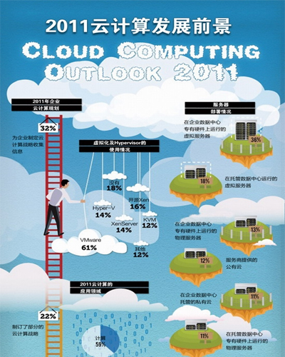 《2011云計(jì)算發(fā)展前景調(diào)查報(bào)告》的目標(biāo)在于收集企業(yè)用戶中使用虛擬化和云計(jì)算技術(shù)的信息,有助于公眾了解云計(jì)算技術(shù)及其服務(wù)的演進(jìn)。這份調(diào)查報(bào)告的結(jié)果來自2011年第二季度對BitNami、Cloud.com和Zenoss開源與系統(tǒng)管理社區(qū)中500多位用戶的調(diào)查。其目的是想看清楚云計(jì)算技術(shù)的使用趨勢,并對部署虛擬基礎(chǔ)設(shè)施提供參考。