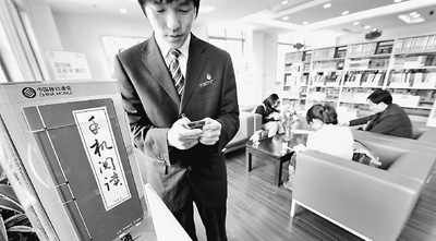 2010年4月16日下午,國內首個G3閱覽室在杭州市下城區(qū)圖書館內建成并免費開放,實現了移動信息技術與公共圖書館的有機結合。圖為讀者正在G3閱覽室里通過G3手機閱讀器免費閱讀。