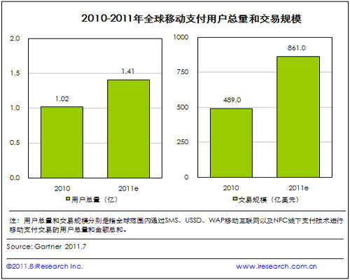 整理Gartner的最新數(shù)據(jù)研究發(fā)現(xiàn),預(yù)計(jì)2011年全球移動(dòng)支付用戶(hù)規(guī)模將達(dá)到1.41億,較2010年增長(zhǎng)38.2%;交易金額也將由2010年的489億美元增長(zhǎng)至861億美元,增長(zhǎng)率超過(guò)76%。該數(shù)據(jù)顯示,全球移動(dòng)支付市場(chǎng)呈現(xiàn)穩(wěn)步增長(zhǎng)態(tài)勢(shì),而交易金額的增長(zhǎng)速度遠(yuǎn)遠(yuǎn)超過(guò)用戶(hù)數(shù)量的增長(zhǎng)速度也表明人們對(duì)于移動(dòng)支付方式的依賴(lài)正在逐步加深。