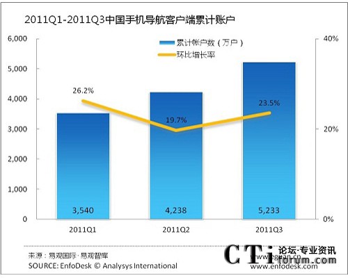 2011年3季度中國手機(jī)導(dǎo)航客戶端帳戶達(dá)5233萬
