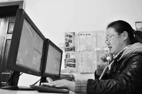 圖:東陽出租車呼叫中心調度員韓欣在接聽電話,調度車輛