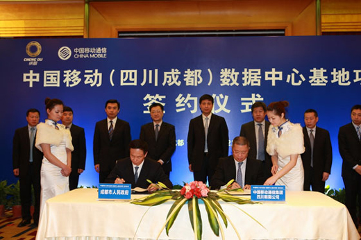 2012年2月22日,中國移動(四川成都)數(shù)據(jù)中心基地項目在四川成都正式簽約啟動。成都市政府葛紅林市長、劉超常委、白剛副市長與中國移動通信集團公司魯向東副總裁、中國移動四川公司簡勤總經(jīng)理等出席簽約儀式,成都市政府與中國移動四川公司代表雙方簽署合作協(xié)議。