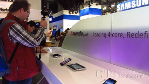 華為在移動(dòng)通信世界大會(huì)首日率先發(fā)布了Ascend D四核手機(jī)。據(jù)展臺(tái)工作人員聲稱,此款四核手機(jī)將在今年4月左右上市,同時(shí)出現(xiàn)在展臺(tái)的還有四核平板電腦Media Pad10,超高清的觸摸屏、超薄的設(shè)計(jì)及高速設(shè)計(jì),使它成為了華為今年推出的明星產(chǎn)品。此款平板電腦利用Android操作系統(tǒng),據(jù)稱會(huì)在今年8月上市。