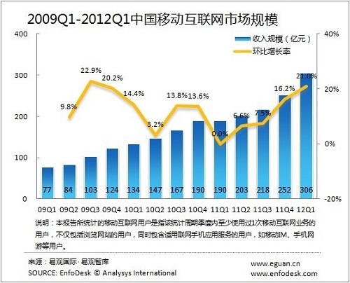 易觀:2012Q1中國移動互聯(lián)網(wǎng)市場規(guī)模突破300億