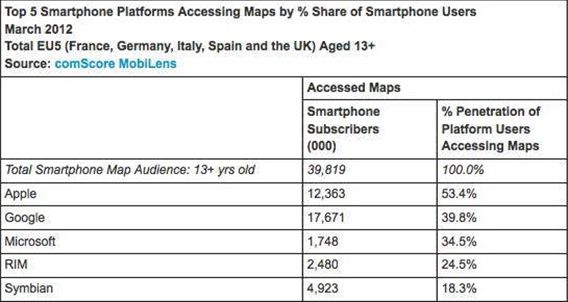 ComScore調(diào)查:35%歐洲智能手機用戶使用地圖服務
