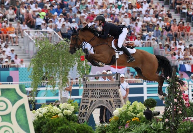 8月2日,英國隊選手查爾斯在比賽中。當日,在巴黎奧運會馬術團體場地障礙大獎賽決賽中,英國隊奪得金牌。新華社記者 楊磊 攝