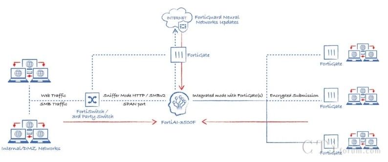 此外,AI技術(shù)還貫穿于Fortinet的多個(gè)產(chǎn)品與功能中,形成高效的工作流。以威脅檢測(cè)與響應(yīng)為例,當(dāng)FortiGate的雙引擎也無(wú)法確定某個(gè)文件的合法性時(shí),它可以將該文件提交給FortiNDR進(jìn)行深度分析,利用云端深度神經(jīng)網(wǎng)絡(luò)AI進(jìn)行0 Day攻擊、勒索軟件等深層次分析。若仍無(wú)法確定,還可進(jìn)一步提交給FortiSandbox,在虛擬機(jī)環(huán)境中進(jìn)行模擬操作,進(jìn)行更為深入的檢測(cè)。在這一系列流程與技術(shù)的支持下,F(xiàn)ortinet的威脅檢測(cè)與響應(yīng)能力已達(dá)到業(yè)界頂尖水平,向滿分100分邁進(jìn)。