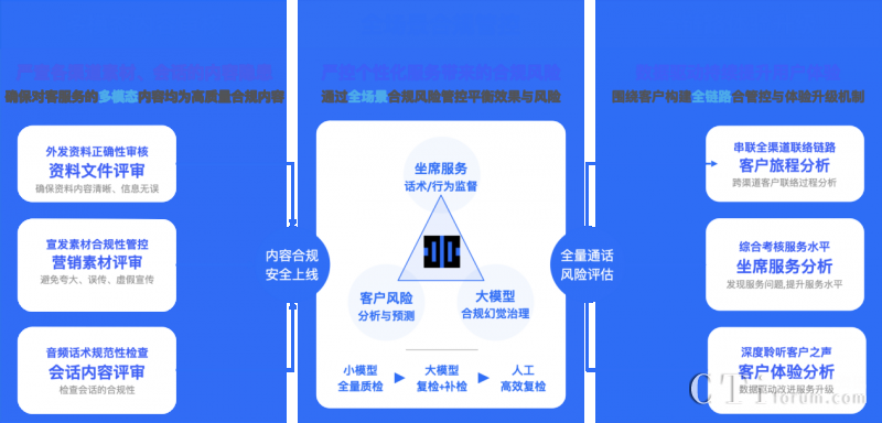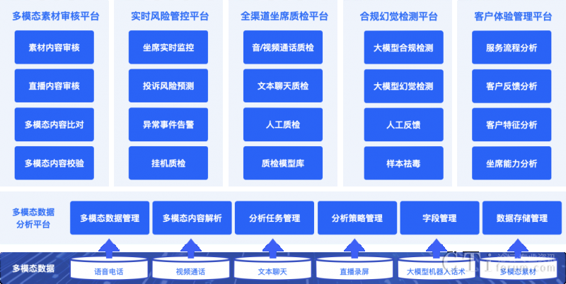 依托多項AI能力融合應(yīng)用,升級后的【多模態(tài)合規(guī)分析平臺】能處理對話數(shù)據(jù)、圖片、音頻和視頻等各種格式的信息,同時采用大小模型組合式AI合規(guī)檢查機(jī)制,對各個渠道的客戶互動數(shù)據(jù)進(jìn)行聚合分析,實現(xiàn)大模型構(gòu)成坐席和客戶間全場景多模態(tài)數(shù)據(jù)檢測與分析,以及客戶體驗升級。