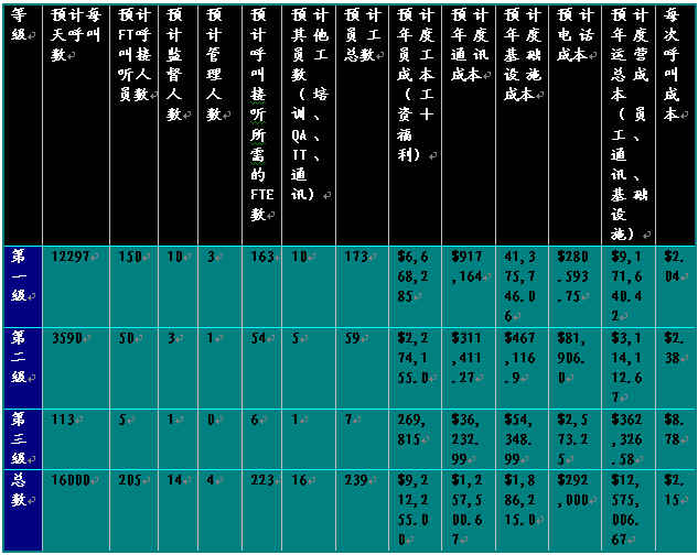 | 每天呼叫數(shù)每天呼叫總數(shù) = 20,00080% 代表回復呼叫數(shù) = 16,00020% IVR回復呼叫數(shù) = 4,000 |