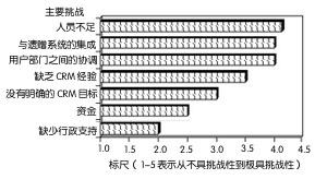 圖2 IT部門人員實施CRM戰(zhàn)略時面臨的主要挑戰(zhàn)