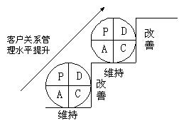 容,而PDCA環(huán)在客戶關(guān)系管理中不斷循環(huán)的結(jié)果就是企業(yè)客戶關(guān)系管理水平的不斷推進(jìn),這個過程可以用上圖表示。 |