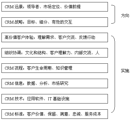 對于大多數(shù)公司而言,一個產(chǎn)品戰(zhàn)略很好理解。但是CRM戰(zhàn)略卻不太讓人理解。這是因為在CRM產(chǎn)業(yè)界、學(xué)術(shù)界對"CRM是什么"、"CRM戰(zhàn)略由什么組成"還沒有達(dá)成共識。因此,以下所闡述的CRM戰(zhàn)略并不一定勝人一籌,但我們會努力全面論述CRM戰(zhàn)略框架。我們認(rèn)為一個CRM戰(zhàn)略必須包括以下幾個內(nèi)容:定義價值前提、定義客戶戰(zhàn)略、企業(yè)變革計劃。