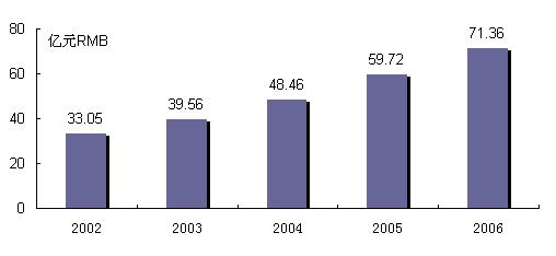 賽迪顧問對中國管理軟件市場的研究表明,2006年,中國管理軟件市場規(guī)模總量達到71.36億元,比去年同期增長19.5%,一改前幾年的加速增長態(tài)勢,增長率有一定下滑,中國管理軟件市場已經(jīng)進入平穩(wěn)增長期,主要原因在于企業(yè)信息化應用從大規(guī)模上線新系統(tǒng)轉入應用深化及精細化階段。