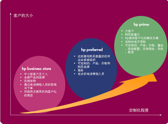 從圖中我們可以看出,對(duì)于不同類(lèi)型的客戶(hù),Business Store, HP Preferred, Hp Prime供其選擇。其中HP Prime,和Dell Premier Page的原理,應(yīng)用如出一轍,在這里就不贅述,它改進(jìn)的地方有如下: