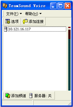 2.基本操作。開服務器,只需點擊一下“服務器:開”這個按鈕,你的機器就變成服務器了,很方便(注意要先設定默認頻道)。加入你的戰(zhàn)友開了服務,你要加入先點擊“添加連接”,在對話框中要輸入對方的IP和密碼,然后再“添加頻道,在局域網(wǎng)中,則直接“添加頻道”就ok了。