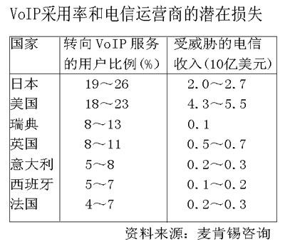 問題在于,傳統(tǒng)電信運營商提供VoIP服務(wù),無疑是在為自己的核心業(yè)務(wù)拆臺,甚至成為自身的掘墓人,在這樣的情況下,傳統(tǒng)運營商將如何尋求新的出路,尋找新的利益增長點就成為擺在面前的迫切問題。目前,VoIP在服務(wù)質(zhì)量、安全性、技術(shù)的成熟度、互聯(lián)互通等方面還存在著一系列不容忽視的問題,而且從全世界來看,除了美國和日本由于特殊的歷史背景VoIP發(fā)展最為迅速以外,其他國家尚處于起步階段,因此,還留有一定的時間給傳統(tǒng)運營商在競爭中尋求新的生存空間和成長方式。