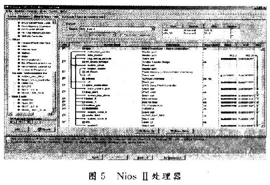 首先使用SOPC Builder系統(tǒng)工具構(gòu)建了一個(gè)NiosCPU作為整個(gè)系統(tǒng)的處理器核,它的Avalon總線對(duì)其他接口及控制器進(jìn)行指令和數(shù)據(jù)傳輸,包括:由內(nèi)部定時(shí)器控制的Avalon總線;為Nios