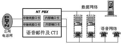 基于PC的PBX或稱為非PBX(un-PBX)系統(tǒng),則為用戶提供了一種更為理想的選擇。從結(jié)構(gòu)上看,基于PC的PBX系統(tǒng)與傳統(tǒng)PBX相差不大,不同之處在于PC PBX構(gòu)筑于通用PC或服務(wù)器架構(gòu)上,采用微軟的Windows NT等通用系統(tǒng)平臺(tái),另外,PC PBX系統(tǒng)的各種接口插件也是通用的,用戶可以較容易地以低廉的價(jià)格從硬件供應(yīng)商中買到。