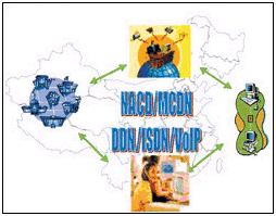 在各分呼叫中心之間,通過DDN數(shù)據(jù)專線或其他形式的傳輸網(wǎng)絡實現(xiàn)用戶信息及其交易數(shù)據(jù)在呼叫中心之間的傳輸,IP語音數(shù)據(jù)也通過租用的DDN專線傳送。各呼叫中心通過SS7或ISDN的信令鏈路判斷轉(zhuǎn)接話務員分機的閑忙,將電話在呼叫中心節(jié)點之間進行轉(zhuǎn)接。