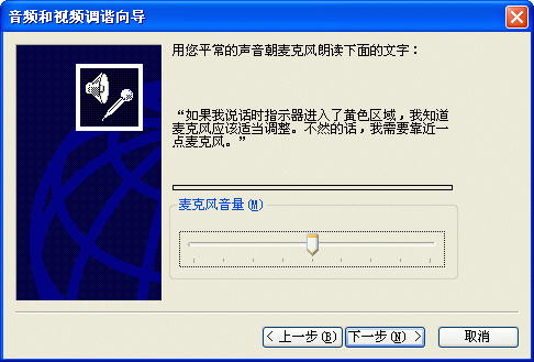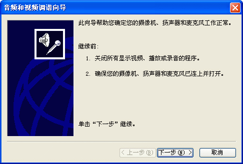 同樣,首先你應該在MSN Messenger中調節(jié)你的音頻和視頻設備。選擇工具->音頻調節(jié)向導(圖8)就會彈出“音頻和視頻調諧向導”的窗口(圖9),請根據(jù)這個向導的提示,一步一步進行測試和調節(jié)。
