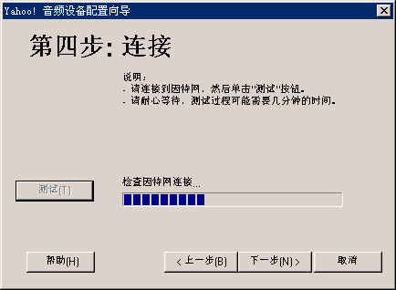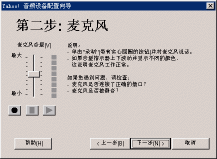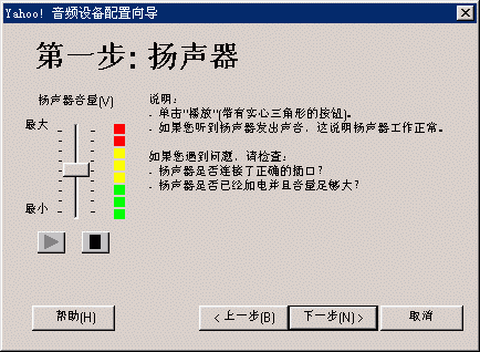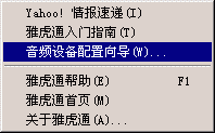 選擇幫助->音頻設備配置向導(圖2),會彈出“音頻設備配置向導”窗口(圖3),這個向導會幫助你對揚聲器、麥克風、回音、網(wǎng)絡連接等項目進行標準的測試和設置。